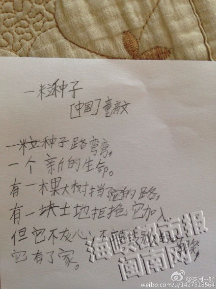 童彦文妈妈贴上微博的4首小诗